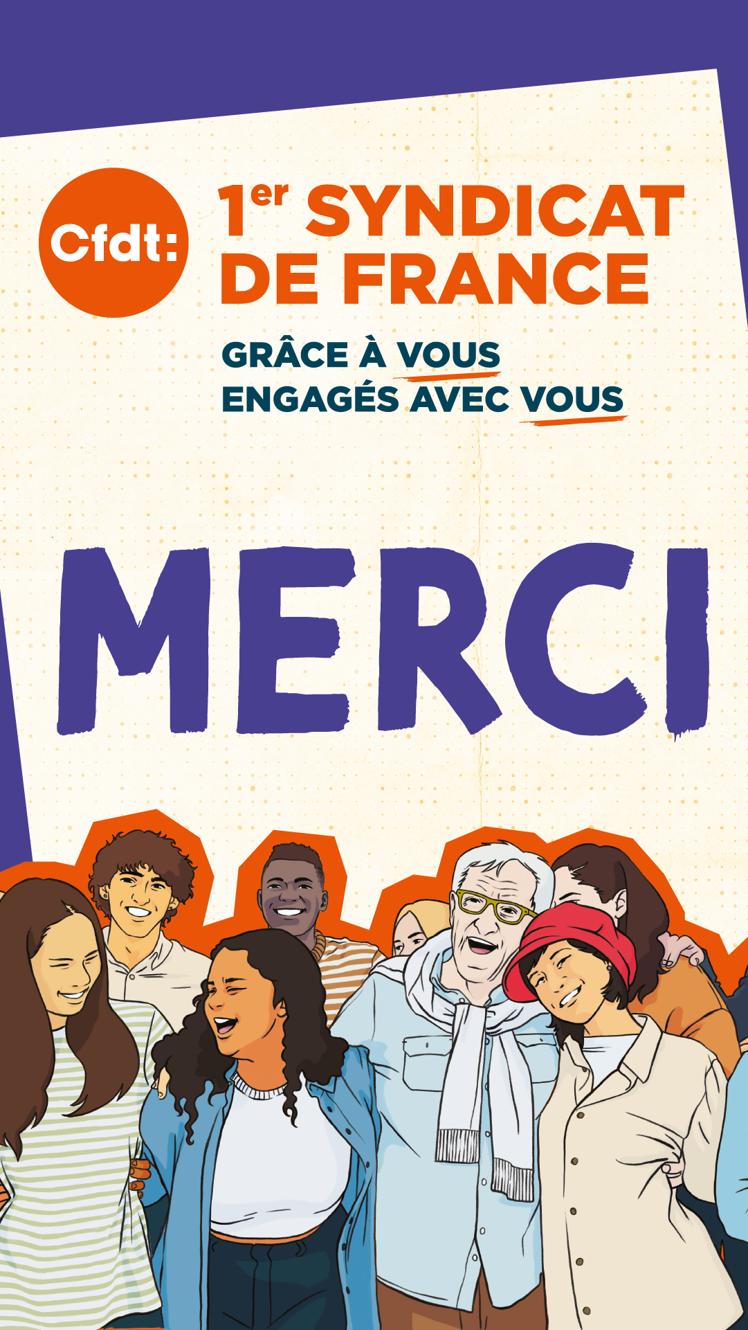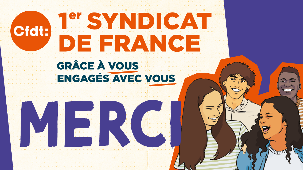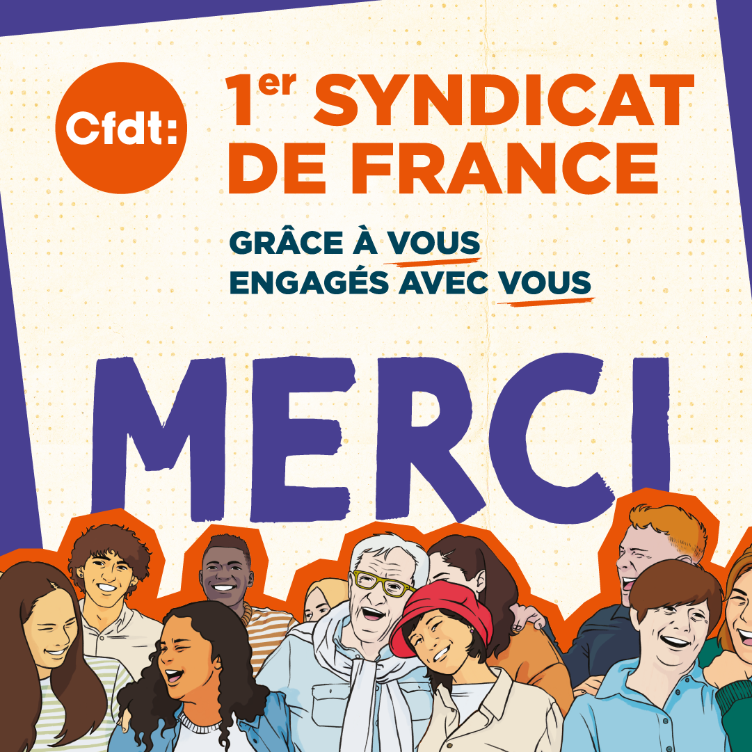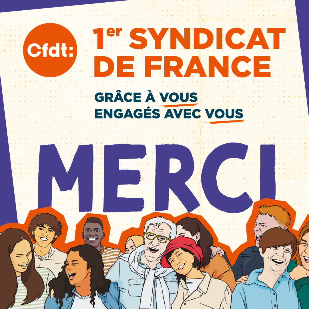 Pour la 3ème fois consécutive, la CFDT est la première organisation syndicale de France ! Merci à tous nos adhérentes et nos adhérents et à nos sympathisantes et sympathisants ! Plus que jamais, GRÂCE à VOUS, ENGAGÉS AVEC VOUS !